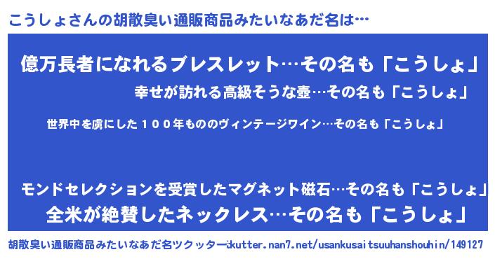 | 意味不明あだ名 | 『住所不定無職こうしょ(9歳)』 |
