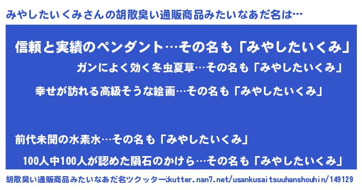 | 肩書あだ名 | 『みやしたいくみ総理大臣』 |