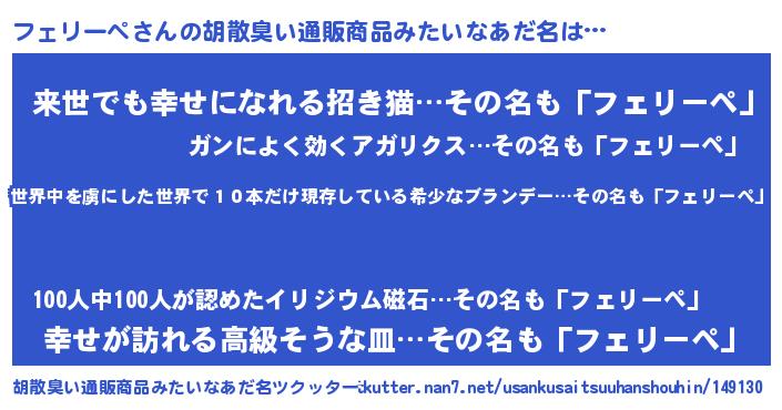 | 男性向けラノベタイトル風あだ名 | 『この素晴らしい世界にフェリーペを!』 |