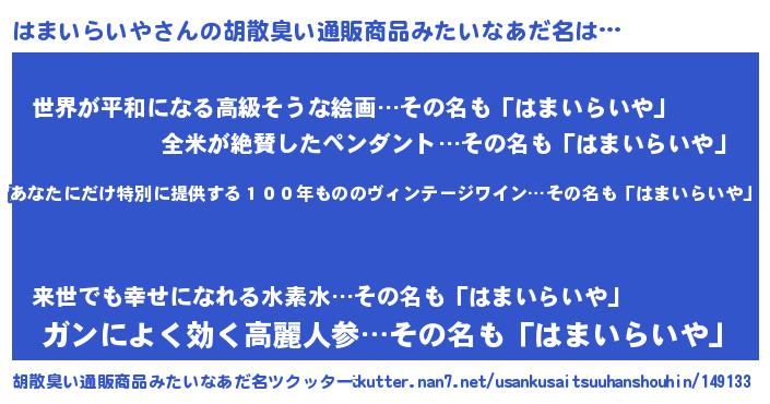 | 意味不明あだ名 | 『住所不定無職はまいらいや(8歳)』 |