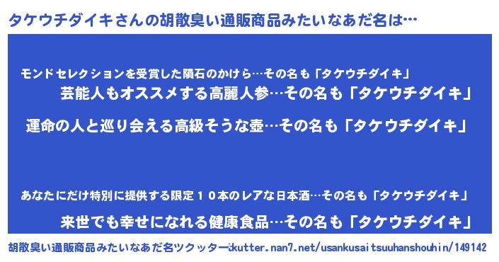 | 肩書あだ名 | 『タケウチダイキ大統領』 |