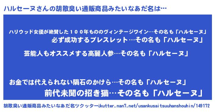 | 意味不明あだ名 | 『自称ハルセーヌ』『永久保存ハルセーヌ』 |