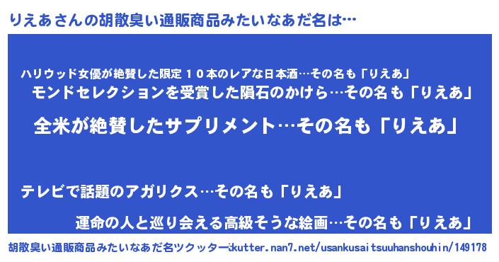 | 女子向けラノベタイトル風あだ名 | 『りえあ様がみてる』 |