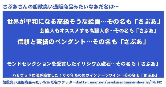 | 意味不明あだ名 | 『とにかく怪しいさぶあ』『自称さぶあ』 |
