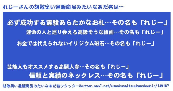 | 意味不明あだ名 | 『眠気覚ましガムれじー味』『自称れじー』 |