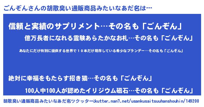 | 男性向けラノベタイトル風あだ名 | 『この素晴らしい世界にごんぞんを!』 |