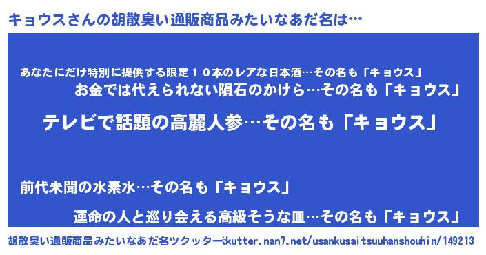 | 意味不明あだ名 | 『自称キョウス』『キョウスフォーエバー』 |