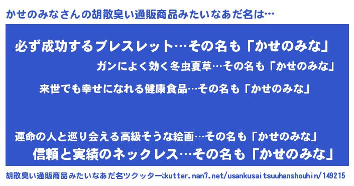 | ヘコむあだ名 | 『かせのみな(爆)』『かせふぇ~』 |
