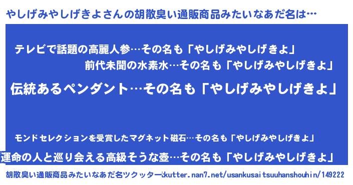 | 意味不明あだ名 | 『とにかく怪しいやしげみやしげきよ』 |