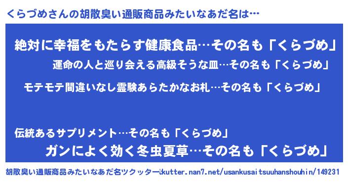 | 意味不明あだ名 | 『ペロリンくらづめ』『永久保存くらづめ』 |