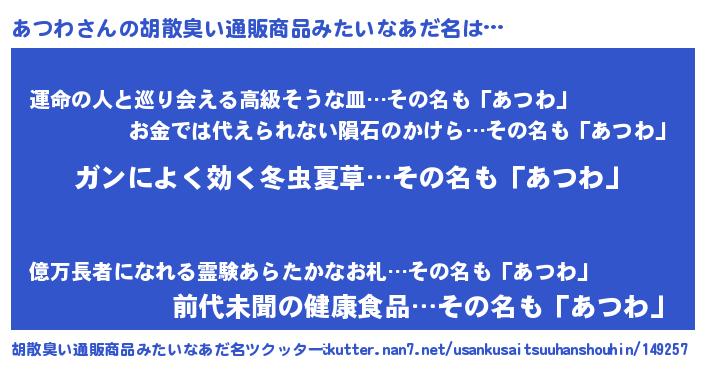 | 肩書あだ名 | 『あつわ総統』『あつわプロデューサー』 |