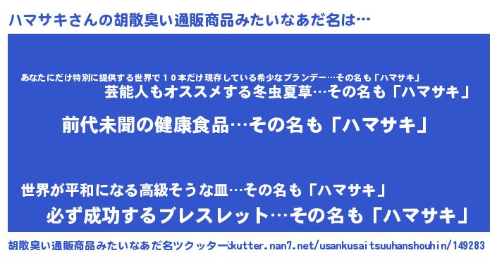 | 意味不明あだ名 | 『永久保存ハマサキ』『ペロリンハマサキ』 |