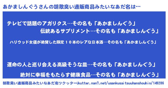 | ヘコむあだ名 | 『あかましんぐう(笑)』『あか太郎』 |