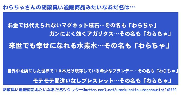 | ヒーロー風カッコイイあだ名 | 『ネオワラチャ』『愛の使者わらちゃ』 |