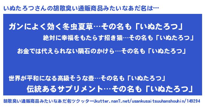 | 女子向けラノベタイトル風あだ名 | 『いぬたろつ恋絵巻』『闇のいぬたろつ』 |