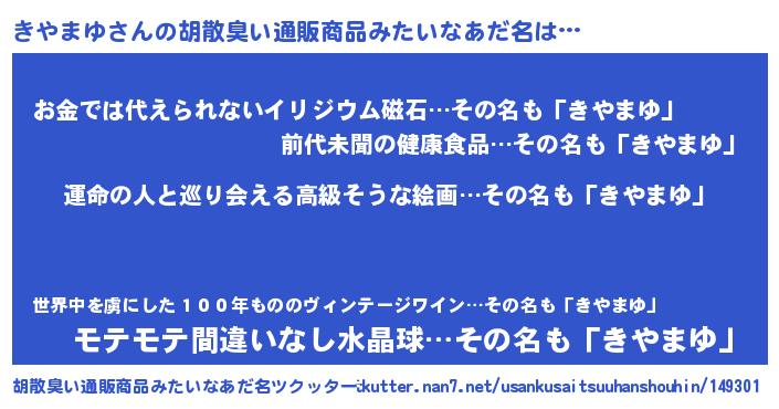 | 意味不明あだ名 | 『きやまゆフォーエバー』 |
