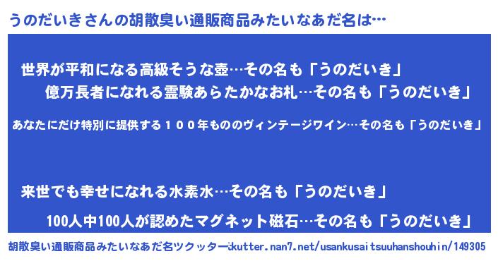 | 肩書あだ名 | 『うのだいき教官』『うのだいき総理大臣』 |