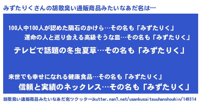 | ヘコむあだ名 | 『みずぷりん』『つくし』『みずもー』 |