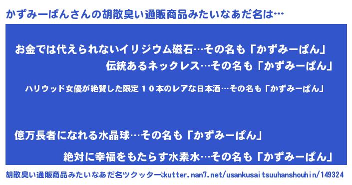 | 意味不明あだ名 | 『住所不定無職かずみーぱん(62歳)』 |