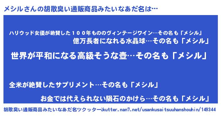 | ファンタジー風あだ名 | 『エターナルメシルー』『カークメシラー』 |