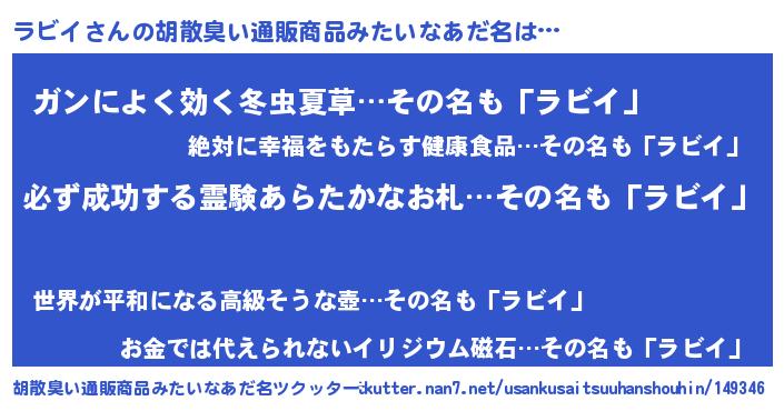 | ヘコむあだ名 | 『ラビもー』『ラビイ(苦笑)』 |