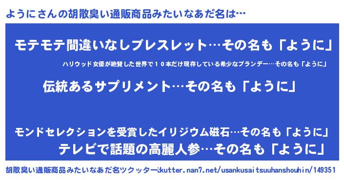 | 意味不明あだ名 | 『とにかく怪しいように』『自称ように』 |