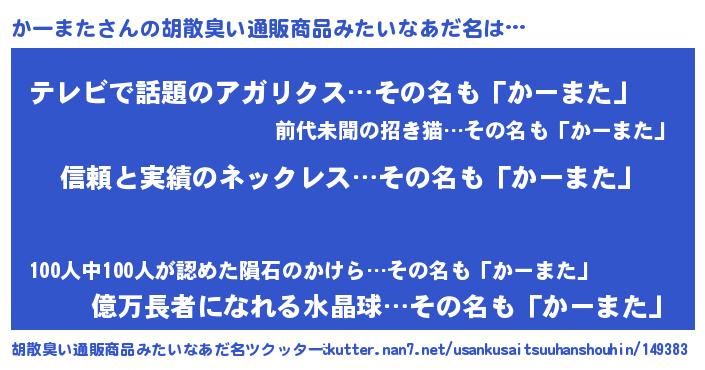 | 意味不明あだ名 | 『とにかく怪しいかーまた』 |