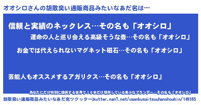 | 男性向けラノベタイトル風あだ名 | 『ノーゲーム・ノーオオシロ』 |
