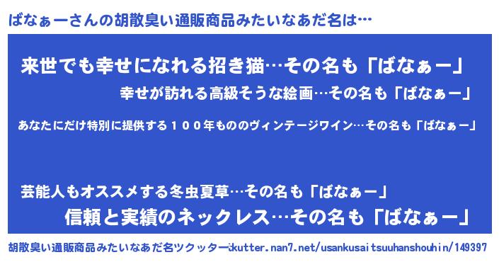 | ヘコむあだ名 | 『ばなぁー(笑)』『ばなを』『牛乳』 |