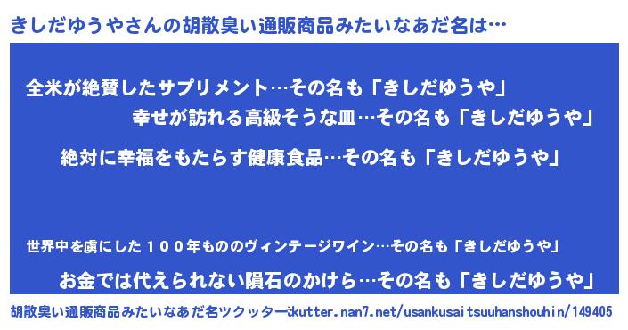 | ヘコむあだ名 | 『きしだゆうや(爆)』『きしお』 |