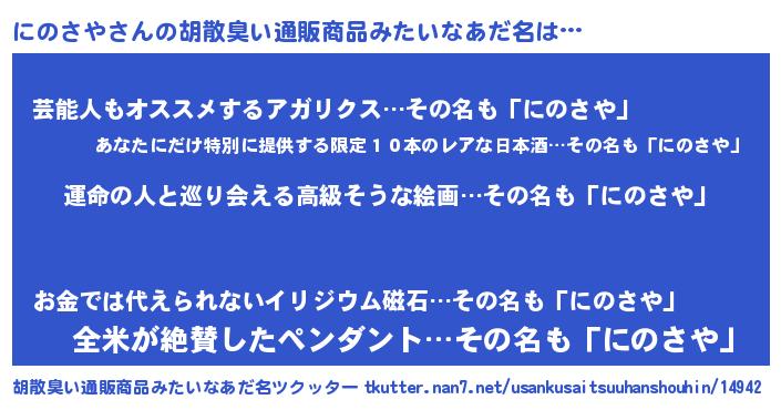 | ヒーロー風カッコイイあだ名 | 『ウルトラにのさやマン』『天弓騎士ニノ』 |