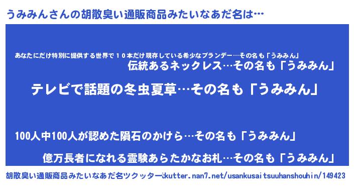 | 意味不明あだ名 | 『自称うみみん』『ペロリンうみみん』 |