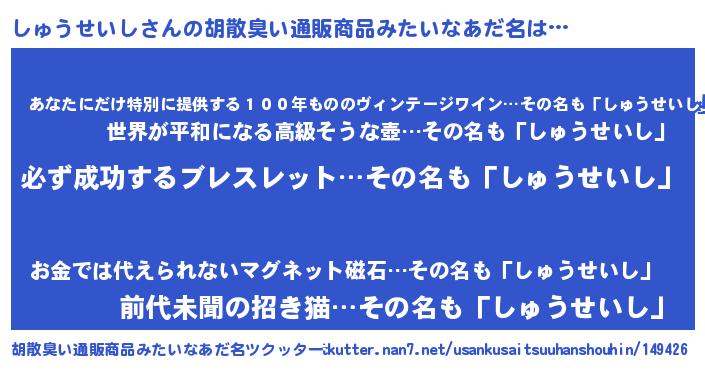 | 男性向けラノベタイトル風あだ名 | 『しゅうせいしの憂鬱』 |