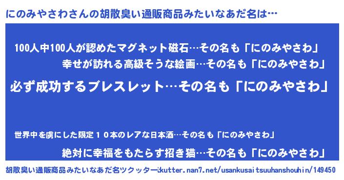 | 肩書あだ名 | 『にのみやさわ社長』『にのみやさわ大佐』 |