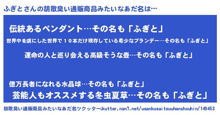 | ポケモン風あだ名 | 『フギトダネ』『ヒフギト』 |