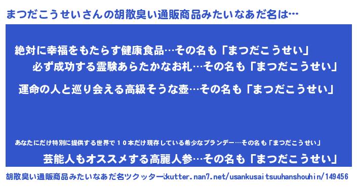 | ヘコむあだ名 | 『レバニラ』『まつだこうせい(苦笑)』 |
