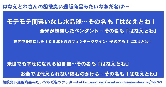 | 欧米人風あだ名 | 『アンジェラ・はなえとわ』 |