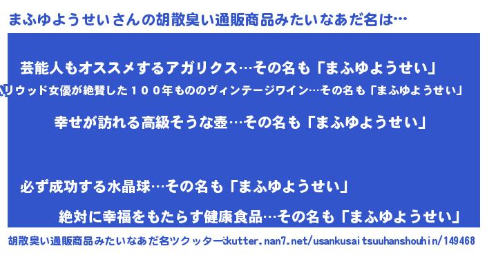 | 男性向けラノベタイトル風あだ名 | 『やはりまふゆようせいの青春ラブコメはまちがっている 』 |