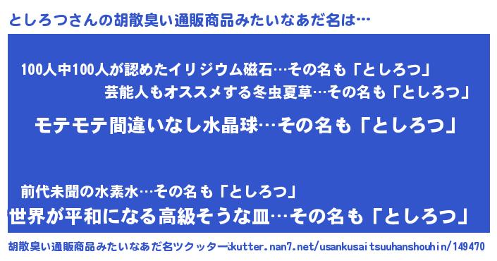 | ヒーロー風カッコイイあだ名 | 『スーパートシロツ』『究極戦士トシロツ』 |