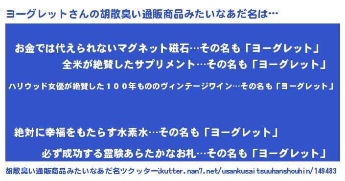 | 意味不明あだ名 | 『住所不定無職ヨーグレット(11歳)』 |