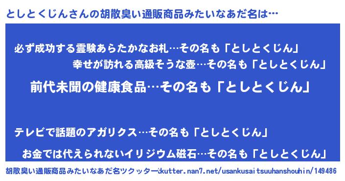 | 意味不明あだ名 | 『永久保存としとくじん』 |