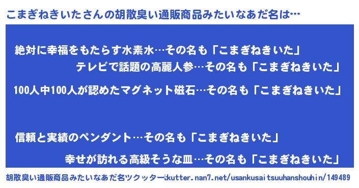 | ヘコむあだ名 | 『こまぎねきいた(笑)』『酢こんぶ』 |