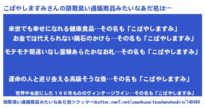 | ヘコむあだ名 | 『こばもー』『こばやしますみ(爆)』 |