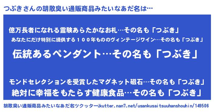 | 恥ずかしいあだ名 | 『ツブリンリン』『プリティーつぶき』 |