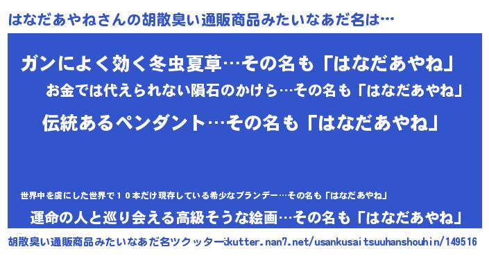 | 意味不明あだ名 | 『とにかく怪しいはなだあやね』 |