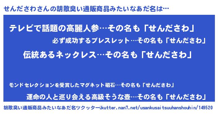| ヘコむあだ名 | 『せんっ子』『豆乳』『せんっふぃ~』 |