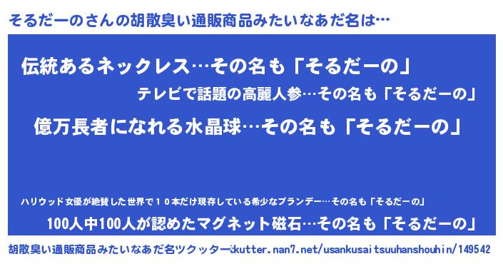 | 男性向けラノベタイトル風あだ名 | 『ソルダーノアートオンライン』 |
