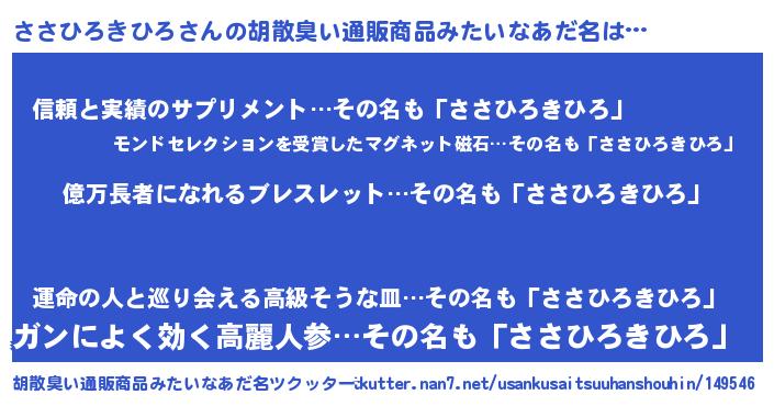 | 男性向けラノベタイトル風あだ名 | 『うちのささひろきひろが世界を掌握している!』 |