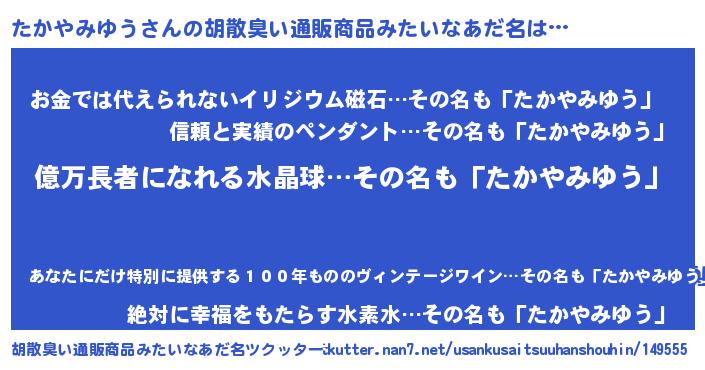 | ヘコむあだ名 | 『たかにゅー』『たかやみゆう(笑)』 |