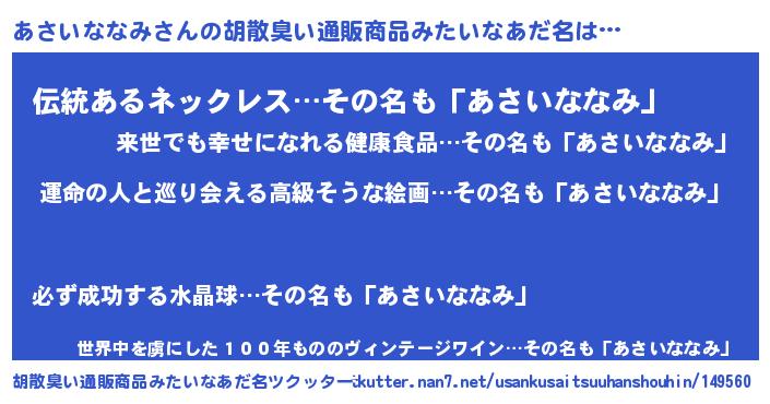 | 意味不明あだ名 | 『あさいななみフォーエバー』 |